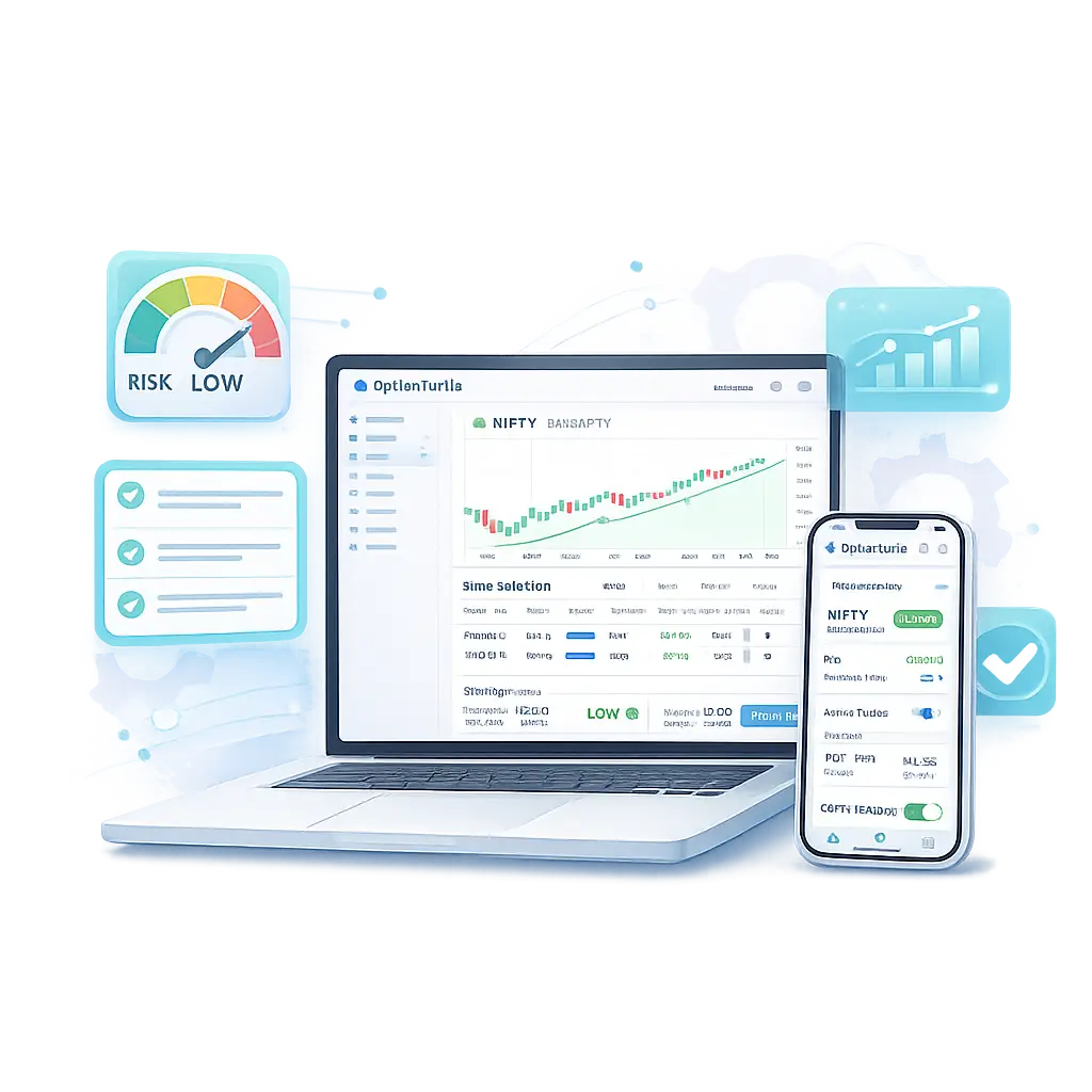Option Turtle uses rule-based systems to cap maximum loss per trade and per day. It automates stop-loss and target placement to help protect your capital and promote disciplined trading.